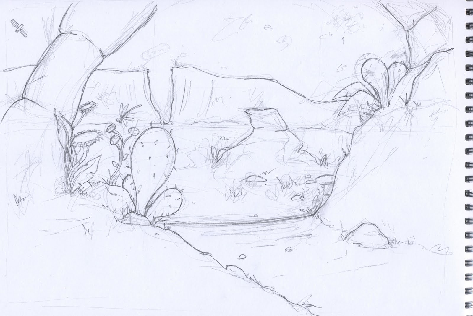 Here's a background concept I shall colour tomorrow. I might rough out some keys and stuff before finialising it. One of my tutors suggested folding a piece of A1 paper up and folding it into squares and doing a different thumnail in each square. Sounds like a good idea!