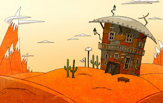 this blog which has model sheets and animatics and backgrounds from the cartoon 'Adventure Time' and I felt all inspired so drew this. It's...not as different to my other backgrounds as I hoped it would be, but I tried! Look, the ground is all wavy and I put different mountains in...